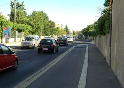 Spot à MontpellierCette piste cyclable longe l’avenue de la Pompignane. Elle est utilisable sur les deux côtés de la chaussée sur une bonne partie de sa longueur. Le revêtement est inégal : de mauvais à bon. Attention aux sorties de véhicules et aux nombreuses intersections.
