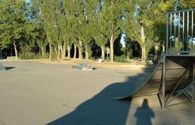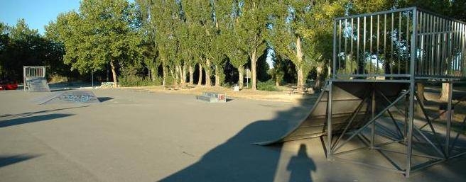Spot à Ramonville-Saint-AgneLe spot s’étend sur une surface de 765 m² (17 m x 45 m). Il se compose d’une pyramide, d’un curb à deux niveaux (double marche), d’une mini-rampe, d’un plan incliné d’un rail et d’un quarter.