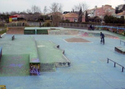 Spot à SèteVoilà plus de 7 ans que la ville de Sète s’est équipée d’une dalle en béton d’environ 1000 m² (25 m x 40 m). Il y a quelques années, les anciens modules vétustes ont été changés. Après 2 ans sans park, les Sétois ont vu un nouvel équipement s’installer. il est désormais possible de rider sur des structures béton et bois et sur une surface agrandie.